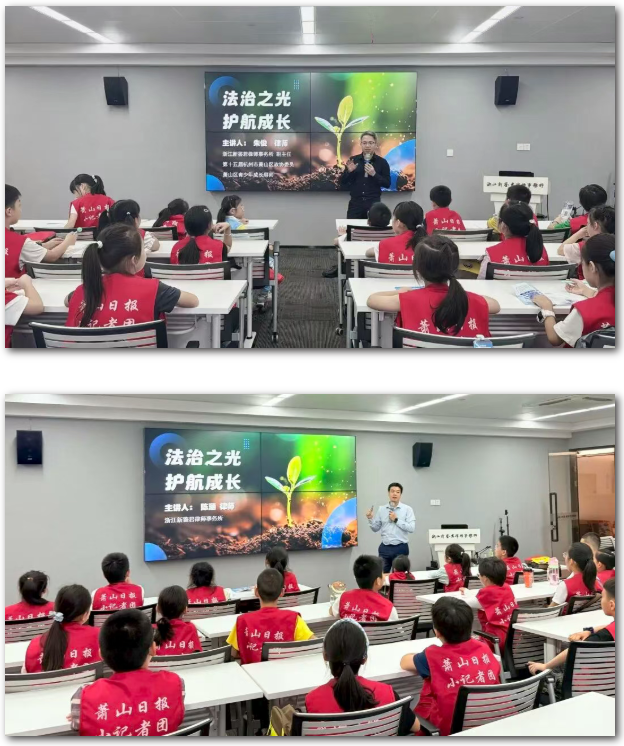 随后,在律所大会议室,朱俊律师、陈涵律师分别为两批萧报小记者们带来了《法治之光,护航成长》专题法治讲座。