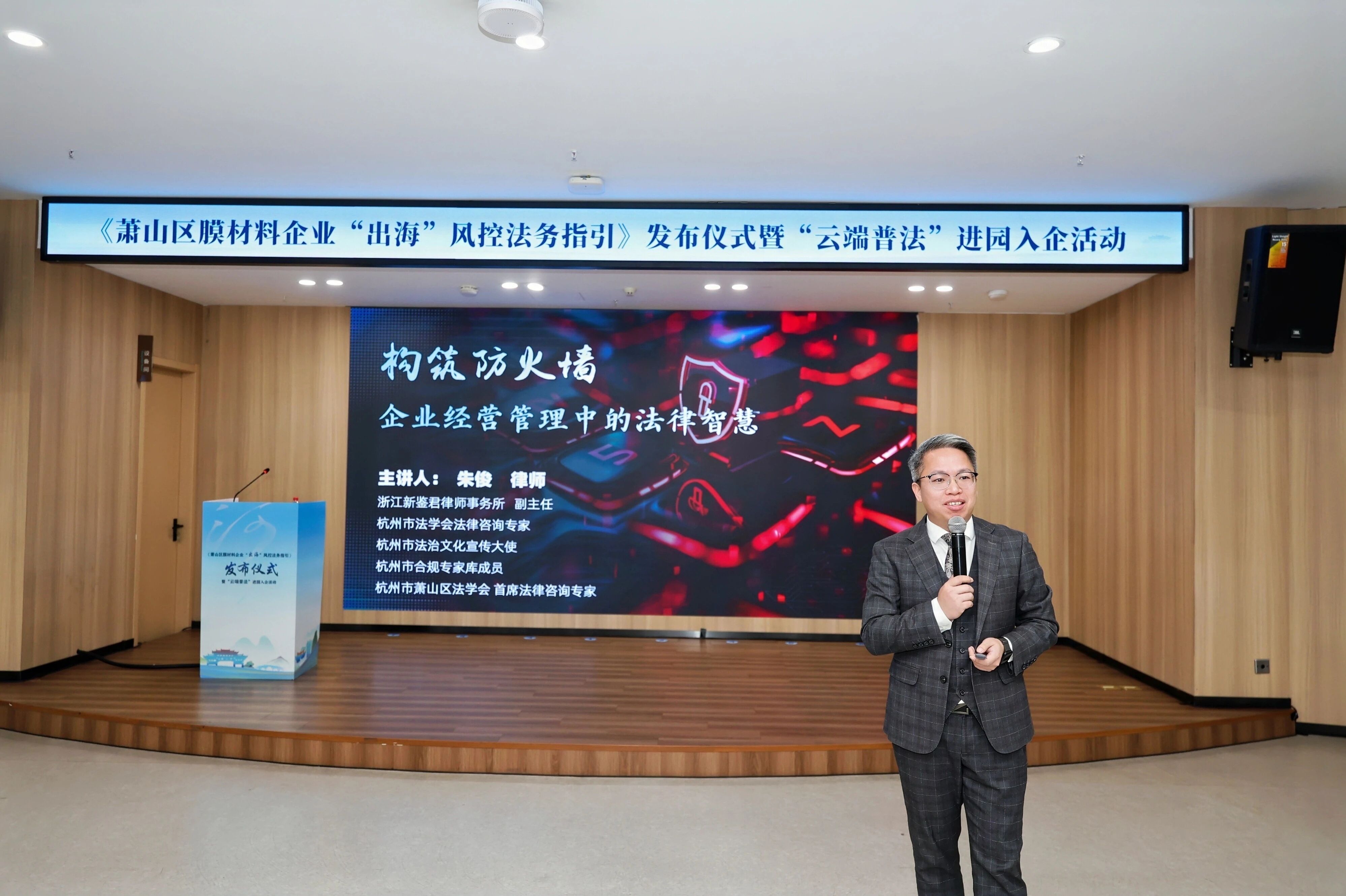 本次活动中,我所副主任朱俊律师还受邀作《构筑防火墙:企业经营管理中的法律智慧》“云端普法”专题法律讲座。