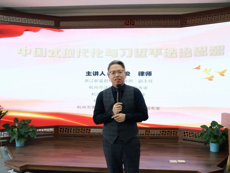 近日,我所副主任、高级合伙人朱俊律师受萧山区委党史研究室与区科学技术协会联合邀请,为两部门领导干部作题为《中国式现代化与习近平法治思想》的专题法治讲座。本次讲座旨在深化党政干部对中国特色社会主义法治道路的理解,增强在法治轨道上推进中国式现代化的实践能力。