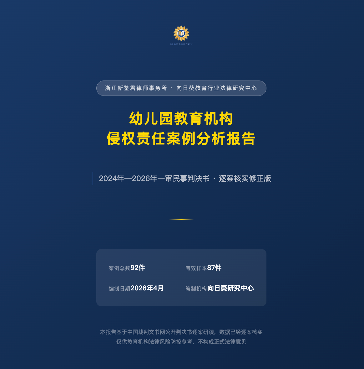 本次讲座的一大亮点,是朱俊律师公开发布了由向日葵教育行业法律研究中心编写的《幼儿园教育机构侵权责任案例分析报告》。