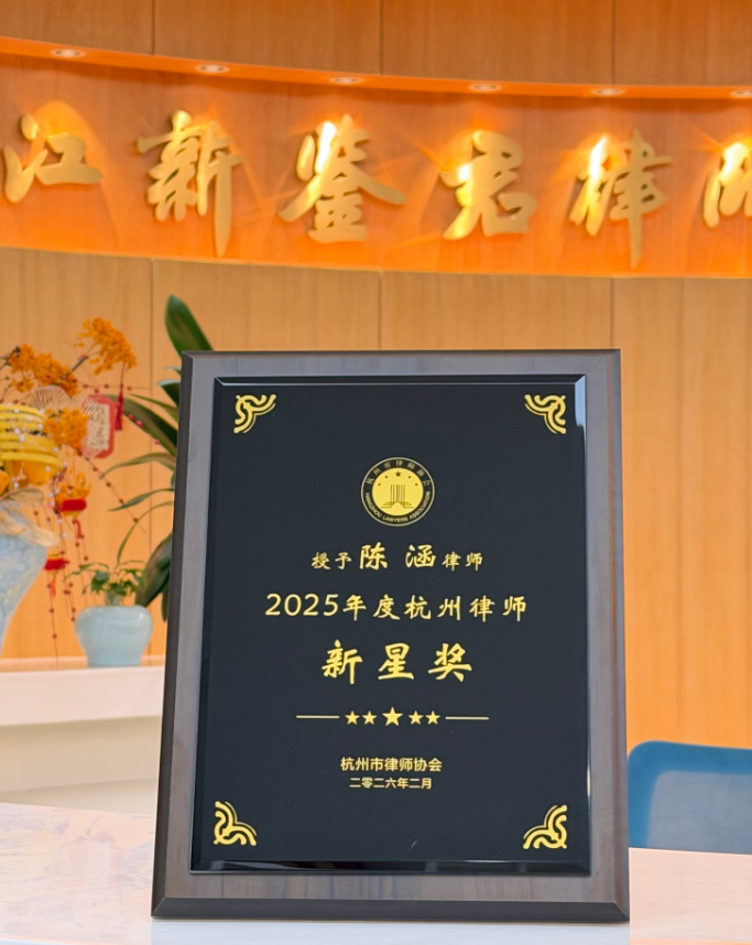 陈涵律师荣获“2025年度杭州律师新星奖”荣誉称号