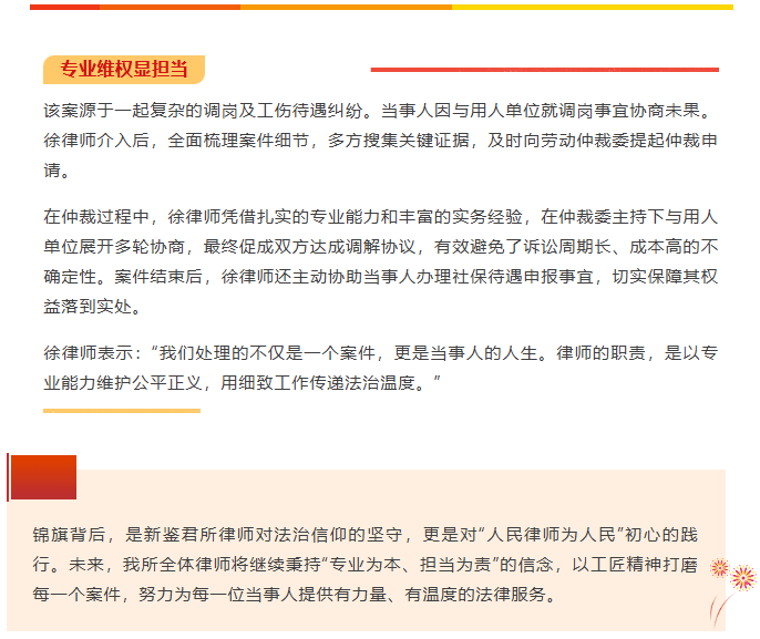 专业服务赢赞誉 新鉴君所徐国耀律师获赠锦旗