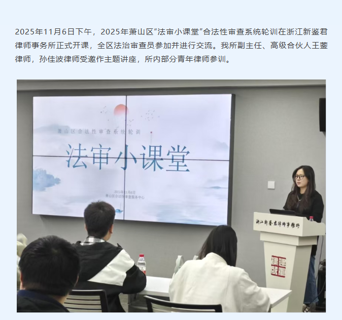 萧山区“法审小课堂”合法性审查系统轮训在新鉴君所开课