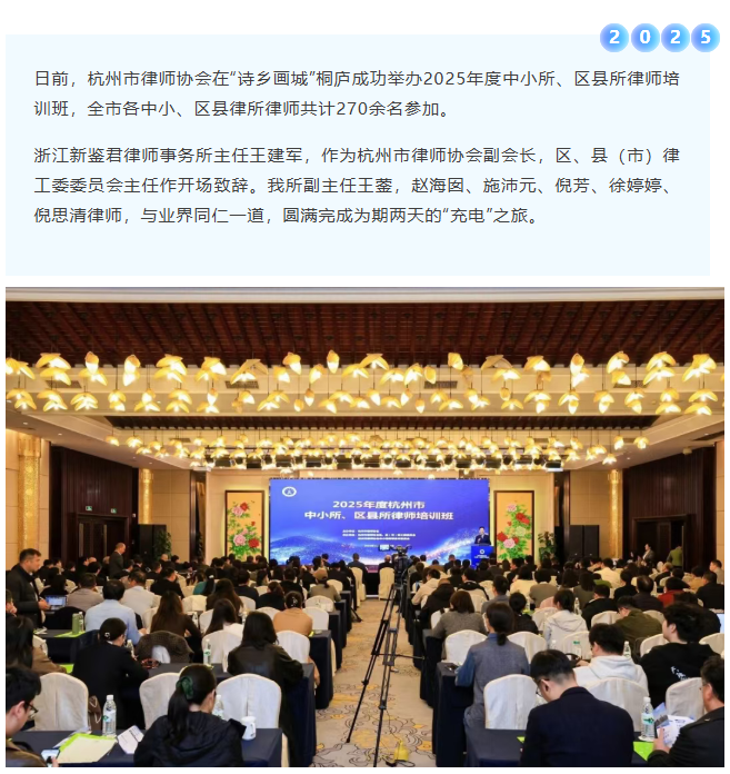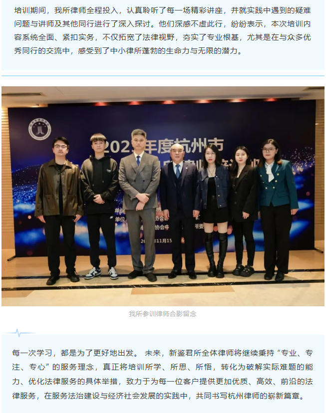 新鉴君所律师积极参加杭州市中小所、区县所律师培训班