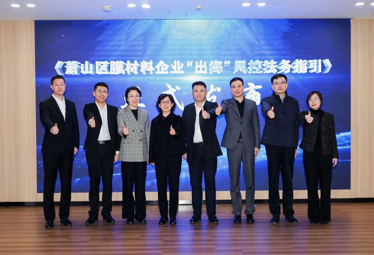 法治是企业稳健发展的基石,合规风控是企业行稳致远的保障。2025年11月24日上午,由萧山区委法治办、区司法局、区商务局、区法学会、区审管办、河上镇人民政府联合举办的《萧山区膜材料企业“出海”风控法务指引》(以下简称“《指引》”)发布仪式暨“云端普法”进园入企活动在河上镇举行。