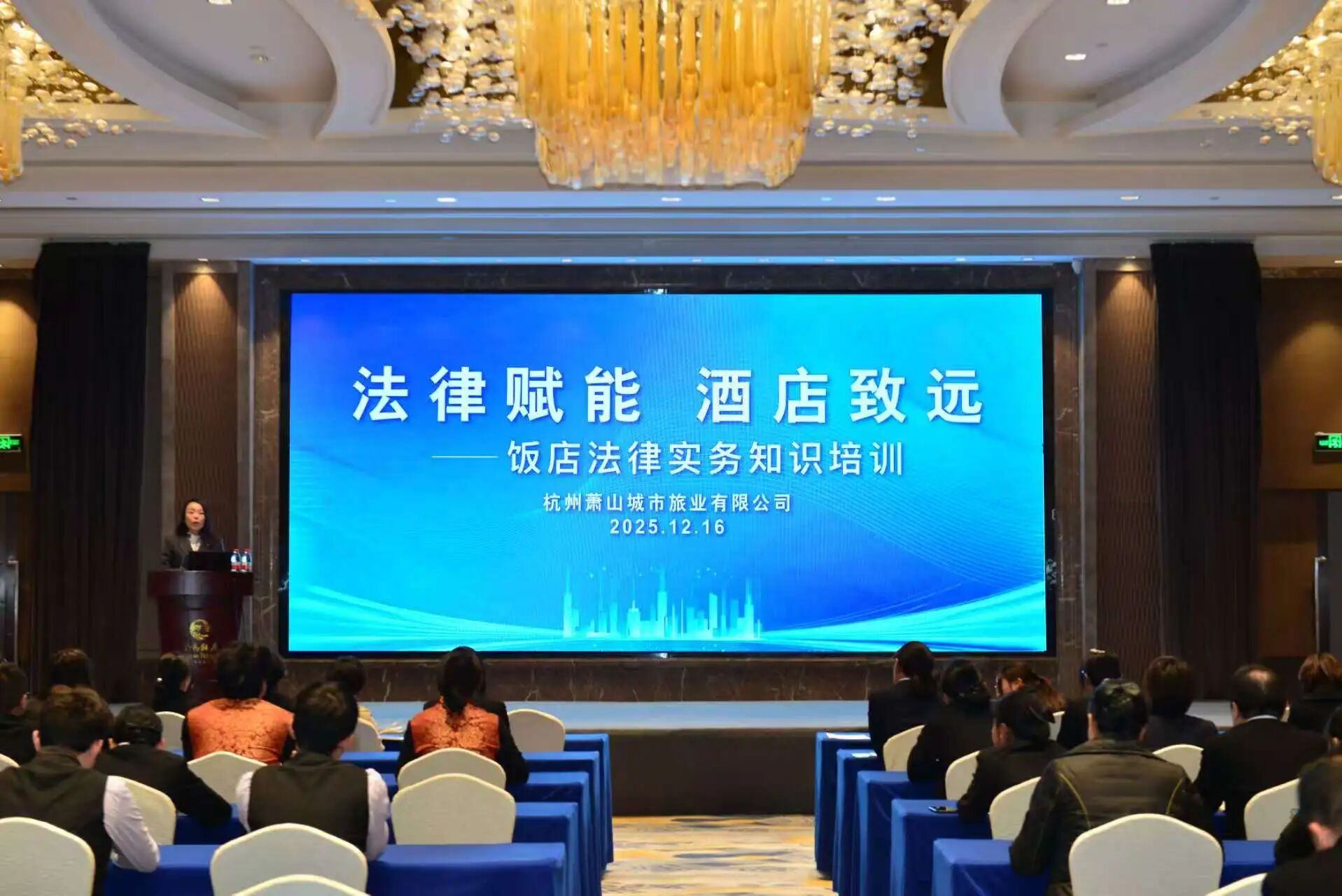 为切实筑牢法治意识根基,增强酒店行业从业者法律风险防范能力,降低酒店经营风险,12月16日下午,我所合伙人唐煜晖律师应杭州萧山城市旅业有限公司邀请,为金马饭店员工作题为“酒店人的法律智慧”专题法律讲座。