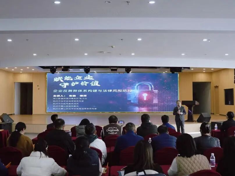 为全面提升企业合规管理效能,筑牢内部廉洁风险防火墙,2025年12月30日,我所副主任、高级合伙人朱俊律师受萧山区司法局、达利(中国)有限公司邀请,以线上、线下的形式,为达利(中国)有限公司中高层管理人员及各部门涉及供应商的关键岗位人员,共计二百五十余人作《赋能企业 守护价值—企业反舞弊体系构建与法律风险防控》的专题法治讲座。