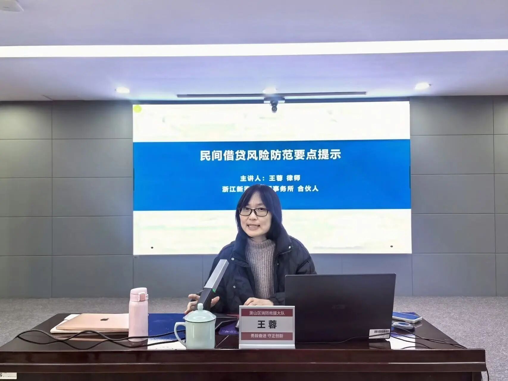 2026年1月6日,浙江新鉴君律师事务所合伙人王蓉律师应邀走进萧山区消防救援大队,为消防队员们开展了一场题为《民间借贷风险防范要点提示》的专题讲座。