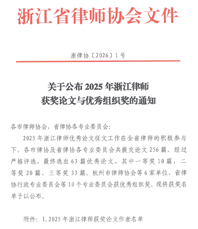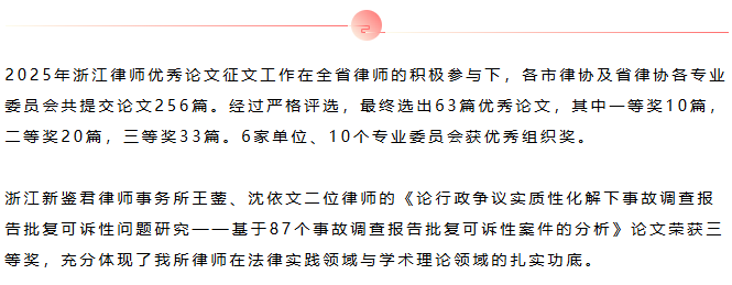 新鉴君所律师论文荣获2025年浙江律师优秀论文三等奖