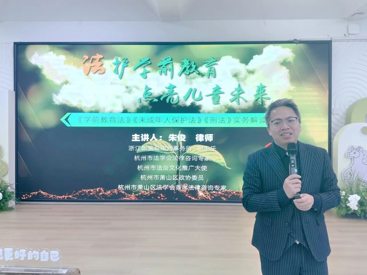 2026年3月2日上午,我所副主任朱俊律师受萧山区楼塔中心幼儿园邀请,为全体教师作关于《法护学前教育 点亮儿童未来 <学前教育法> <未成年人保护法> <刑法>实务解读》专题法治讲座。